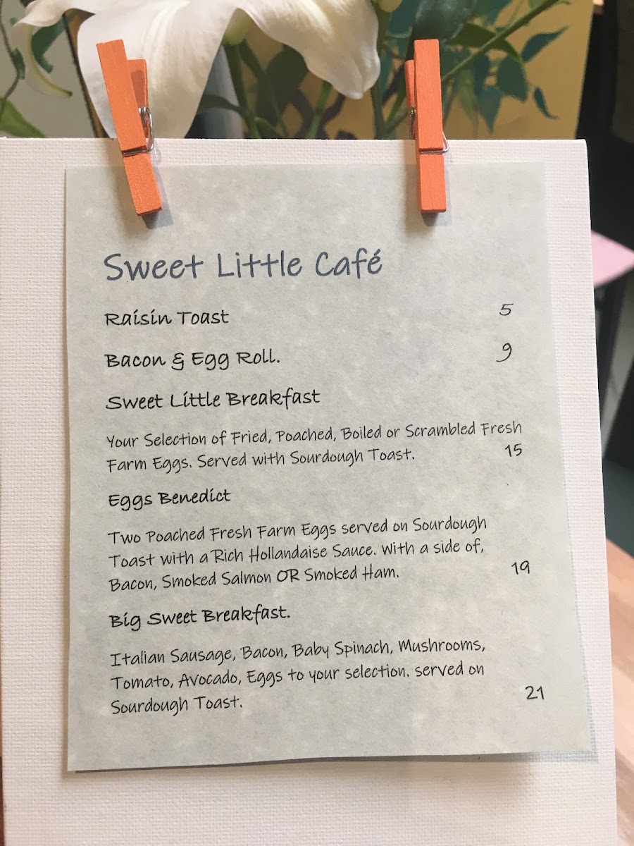 Sweet Little Cafe Menu